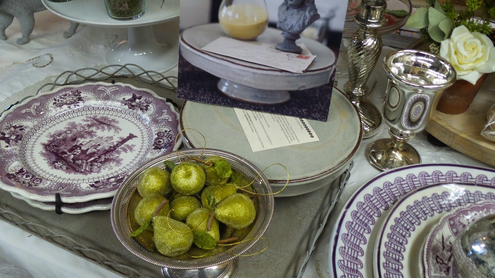 And yes that is purple transferware! A nice change to traditional red and green for holiday dining.
